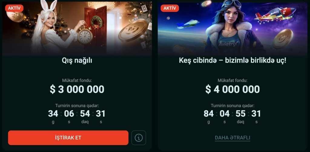 Başlanğıc paketindən əlavə, platformada mövsümi aksiyalar, turnirlər və keşbek formatları da var. Freespinlər adətən konkret slotlara bağlanır, keşbek isə seçilmiş dövr üzrə nəticənin bir hissəsini kompensasiya etməyə kömək edir. Dinamikanı və yeni mexanikaları sevirsinizsə, bu bölməyə vaxtaşırı baxmağa dəyər.